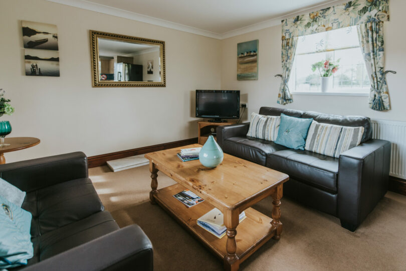 The fitted kitchen has a dining table for 4 plus all the amenities you would find in your own home including a washing machine, dishwasher, fridge freezer and microwave.